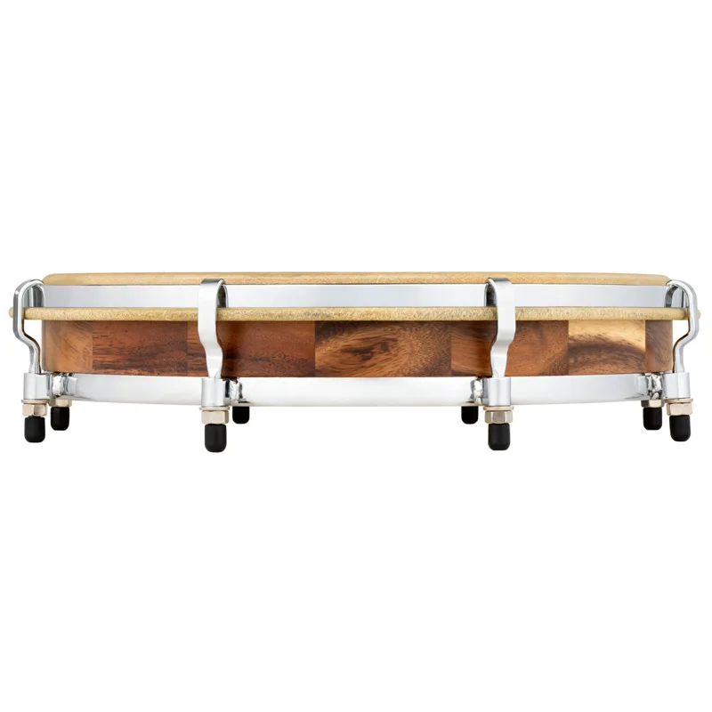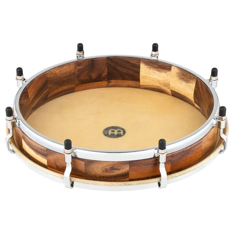 Verwurzelt in den gefühlvollen Rhythmen der puerto-ricanischen Plena-Tradition, werden unsere Pandero de Plena Trommeln mit großer Sorgfalt und kulturellem Respekt gefertigt. Aus hochwertigem, segmentiertem Durianholz hergestellt, verfügt jede Trommel über ein warm klingendes, reaktionsfreudiges Kalbsfell, traditionell verchromte Hardware und präzise J-Haken-Spannmechaniken. Erhältlich in den klassischen Größen Requinto, Punteador und Seguidor, wird jede Trommel einzeln angeboten – ideal für den flexiblen Aufbau von Ensembles.