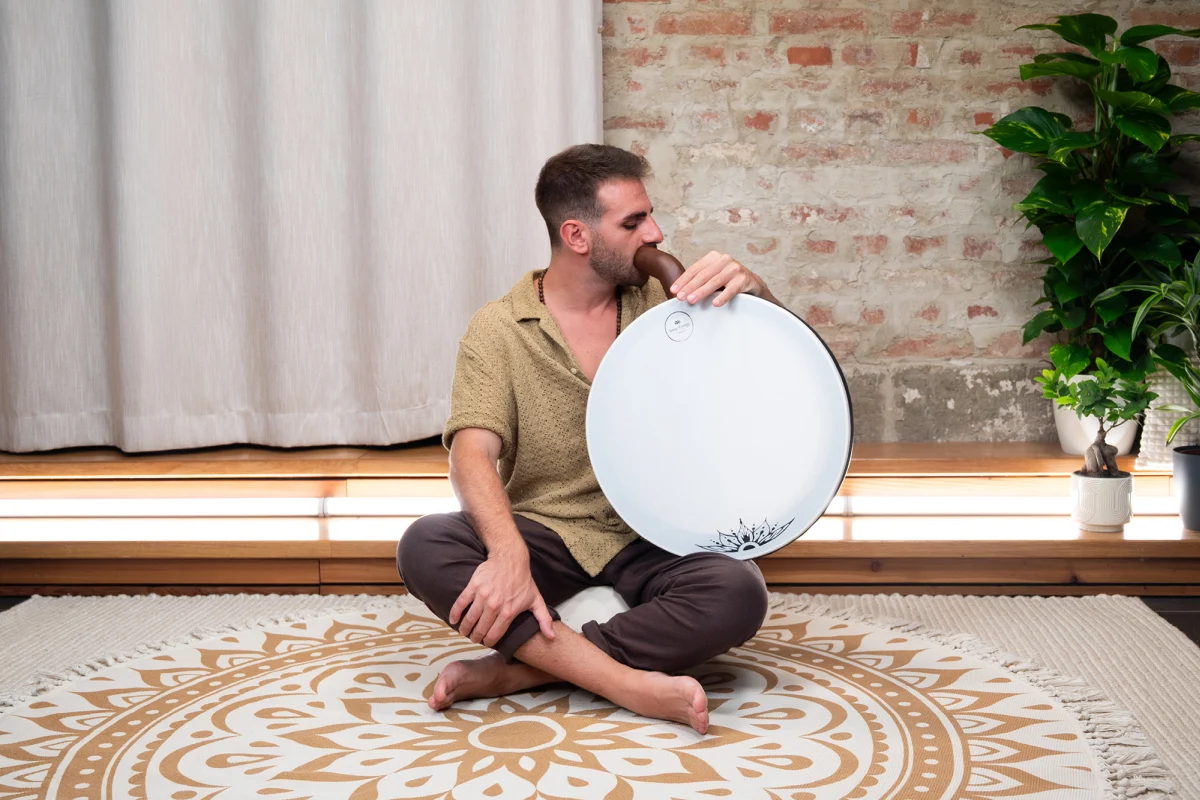 Ein Instrument, zwei Welten – vereint in perfekter Harmonie: Das Meinl Sonic Energy Didgeridrum verbindet den tiefen, erdigen Klang des Didgeridoos mit dem pulsierenden Rhythmus einer Rahmentrommel. Durch das ergonomisch gebogene Mundstück lässt es sich wahlweise als Didgeridoo oder Rahmentrommel spielen – oder beides gleichzeitig für ein faszinierendes Klangerlebnis. Das 17,5" Synthetikfell liefert kraftvolle, warme Beats, während der Resonanzkörper die charakteristischen, vibrierenden Didgeridoo-Töne erzeugt. Dieses außergewöhnliche Hybridinstrument eröffnet neue Wege in der Klangheilung, im Percussion-Ensemble oder für experimentelle Solo-Performances. Mit Softbag und Schlägel im Lieferumfang ist das Didgeridrum sofort bereit für kreative Klangreisen und inspirierende Auftritte.