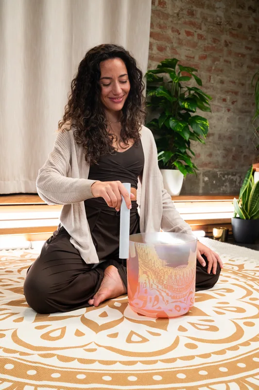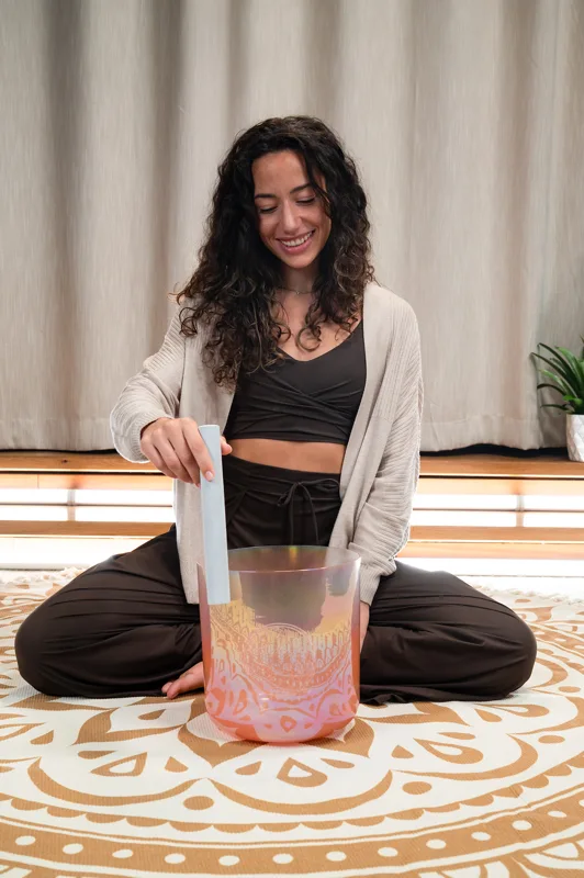 Die Meinl Sonic Energy Essence Crystal Singing Bowls bestehen aus hochreinem Quarz und schaffen durch ihren Klang und ihr Design eine sehr angenehme Atmosphäre. Ihr lang anhaltender Ton breitet sich aus, wenn die Klangschale sanft angeschlagen oder gerieben wird und füllt die Umgebung mit einer beruhigenden, positiven Energie. Unsere Essence Kristallklangschalen zeichnen sich durch einen besonders klaren, vollen und tiefen Klang aus, der Spielende und Zuhörende in einen Zustand der Entspannung versetzen kann. Die Instrumente sind leicht und angenehm zu halten. Durch ihre kunstvoll handgefertigte Form und präzise Stimmung können die Schalen in der Höhe leicht variieren, um eine perfekte Intonation zu gewährleisten. Kristallklangschalen können vielseitig eingesetzt werden – etwa für Entspannungstherapie, Chakrenarbeit, Meditation, Physiotherapie, Klangtherapie, Yoga, emotionale Balance oder auch als dekoratives Element im Raum. Diese Kristallklangschale ist auf 128 Hz gestimmt – eine Frequenz, die in der Klangtherapie oft als „Meister-Ton“ bezeichnet wird und eng mit dem Ton C verbunden ist. Sie ist bekannt für ihre erdenden und ausgleichenden Eigenschaften, die tiefe Entspannung, Stressabbau und inneres Vertrauen fördern. Die Schwingung von 128 Hz resoniert durch den gesamten Körper, die Chakren und Meridiane und wird häufig eingesetzt, um Spannungen zu lösen, den Geist zu beruhigen und das allgemeine Wohlbefinden zu unterstützen. Die Klangschale wird mit einem Silikonring, einem Wildlederschlägel (CSBSML) und einer stabilen Tragetasche geliefert.
