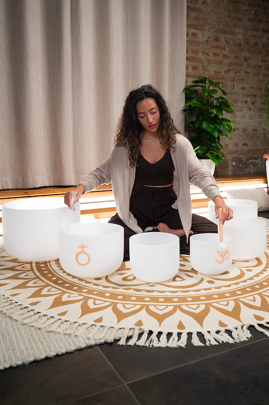 Die weiß-matten Meinl Sonic Energy Crystal Singing Bowls aus hochreinem Quarz schaffen durch ihren Klang und ihr Design eine sehr angenehme Atmosphäre. Ihr lang anhaltender, sphärischer Ton breitet sich aus, wenn die Klangschale sanft angeschlagen oder gerieben wird, sodass die Energie im gesamten Umfeld spürbar ist. Kristallklangschalen können vielseitig eingesetzt werden: zur Chakrenheilung, Meditation, Klangtherapie, Yoga, zur Verbesserung des Feng Shui im Zuhause, zur emotionalen Ausbalancierung oder sogar zur Raumdekoration. Dieses 6-teilige Om-Set strahlt einen hellen und erhebenden Klangcharakter aus, der Klarheit, Inspiration und emotionale Ausdruckskraft fördert und zugleich ein Gefühl von Erdung vermittelt. Sein harmonisches Klangfeld macht es zu einem hervorragenden Begleiter für Meditation, Energiearbeit und zum Schaffen einer lebendigen Atmosphäre in Klangtherapie-Sitzungen.