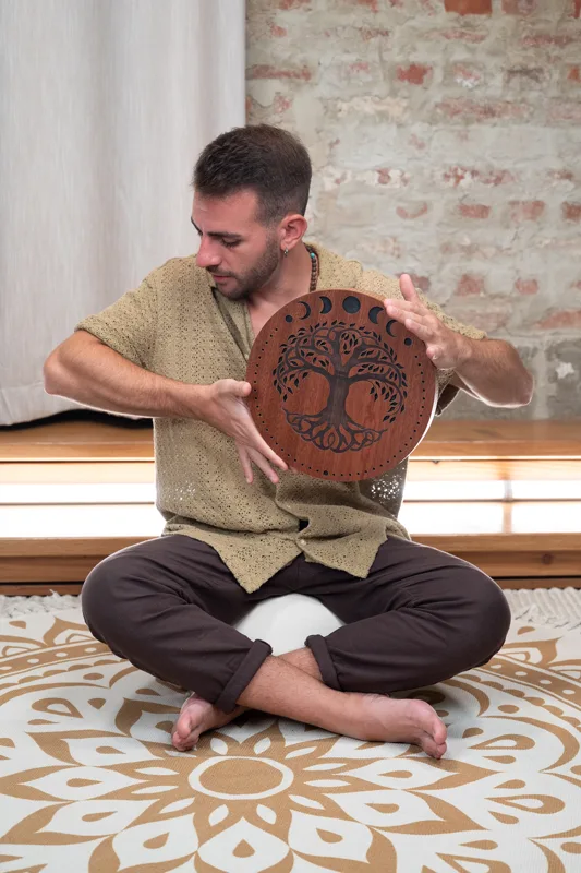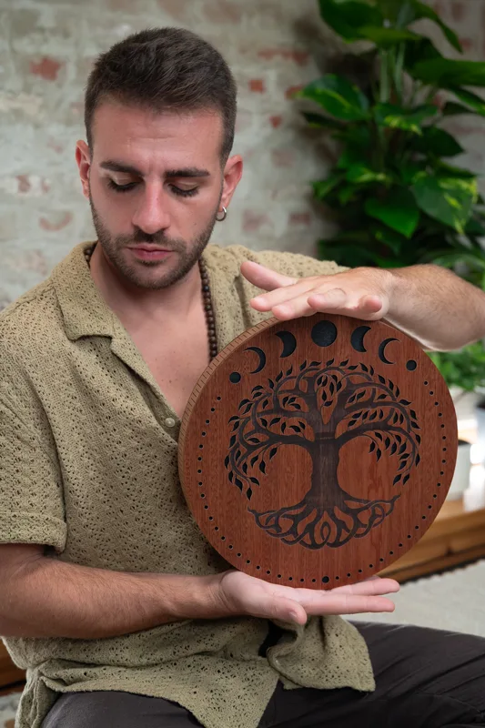 Die Meinl Sonic Energy Rain Disks sind kunstvoll gravierte, leichte Instrumente, die den beruhigenden Klang fließenden Wassers nachbilden. Durch sanftes Drehen mit beiden Händen – ähnlich wie bei einem Spinnrad – werden die inneren Elemente in Bewegung gesetzt und erzeugen einen natürlichen, entspannenden Wasserklang. Das Spiel selbst – das Spüren der Bewegung und das bewusste Hören des Klangs – wirkt meditativ und macht die Rain Disks ideal für Entspannung, Klangtherapie und achtsame Klangmomente. Jede Rain Disk wird mit einer Softbag zum Schutz und einem Holzständer zur stilvollen Präsentation geliefert.