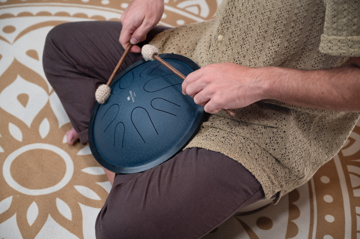 Die Meinl Sonic Energy Compact Steel Tongue Drum ist ein handliches und leicht spielbares Instrument mit einem runden, resonanten Korpusdesign. Ihre acht sorgfältig gestimmten Töne erzeugen einen beruhigenden, melodischen Klang, der zu spontanem Spiel und Entspannung einlädt. Die Compact Steel Tongue Drum kann sowohl mit den Fingern als auch mit den beiliegenden Holzschlägeln mit weich umwickelten Gummiköpfen gespielt werden. Durch ihre kompakte Größe lässt sie sich bequem auf dem Schoß oder auf einer ebenen Fläche platzieren – ideal für unterwegs, zur Meditation oder für entspannte Jamsessions.
