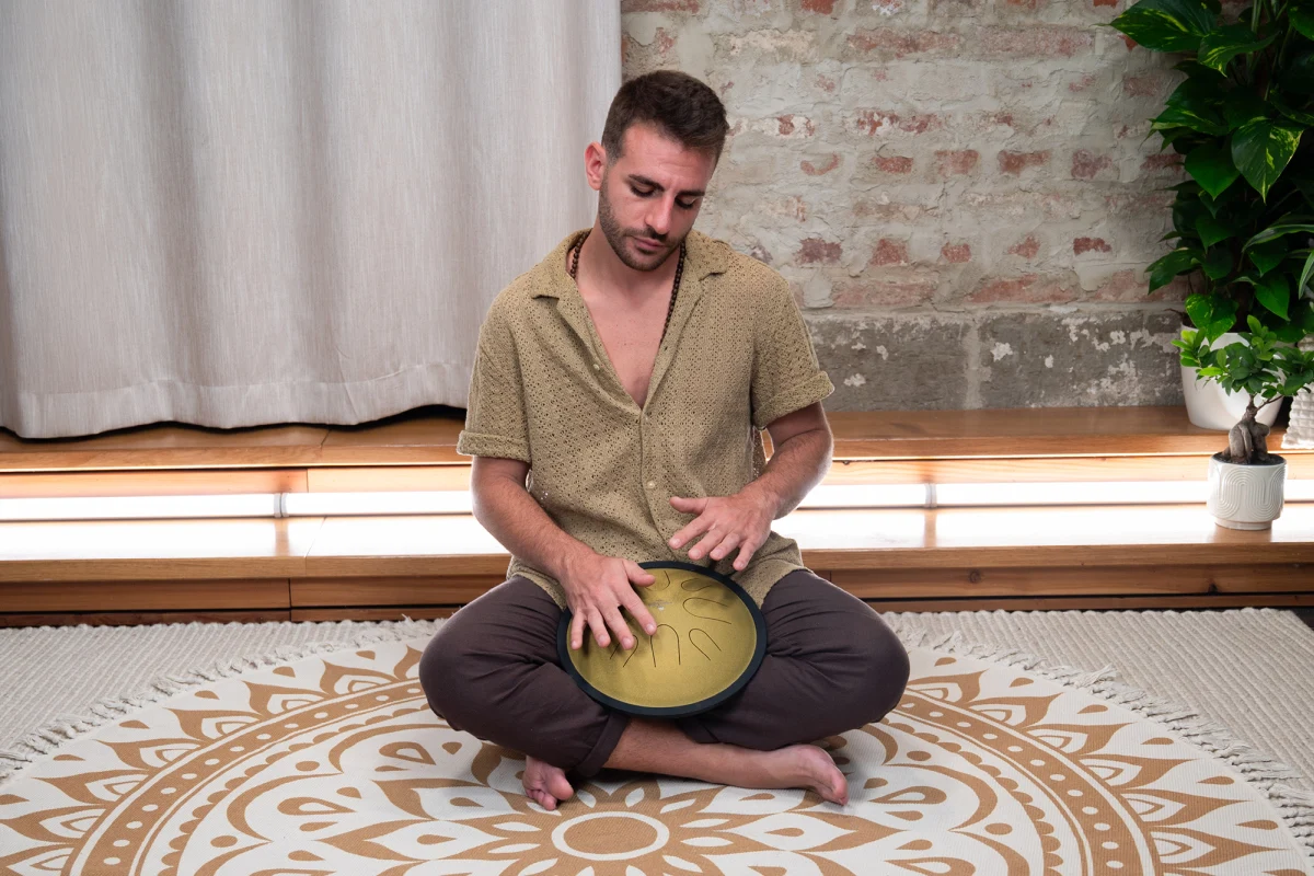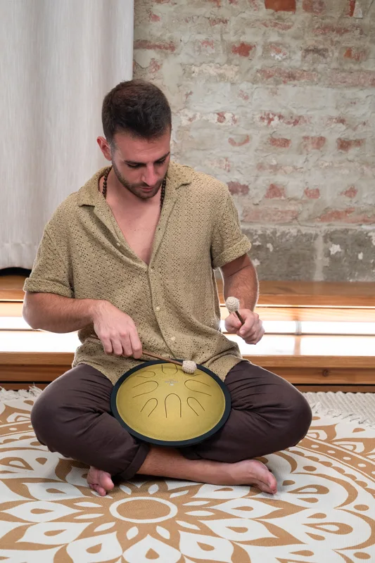 Die Meinl Sonic Energy Compact Steel Tongue Drum ist ein handliches und leicht spielbares Instrument mit einem runden, resonanten Korpusdesign. Ihre acht sorgfältig gestimmten Töne erzeugen einen beruhigenden, melodischen Klang, der zu spontanem Spiel und Entspannung einlädt. Die Compact Steel Tongue Drum kann sowohl mit den Fingern als auch mit den beiliegenden Holzschlägeln mit weich umwickelten Gummiköpfen gespielt werden. Durch ihre kompakte Größe lässt sie sich bequem auf dem Schoß oder auf einer ebenen Fläche platzieren – ideal für unterwegs, zur Meditation oder für entspannte Jamsessions.