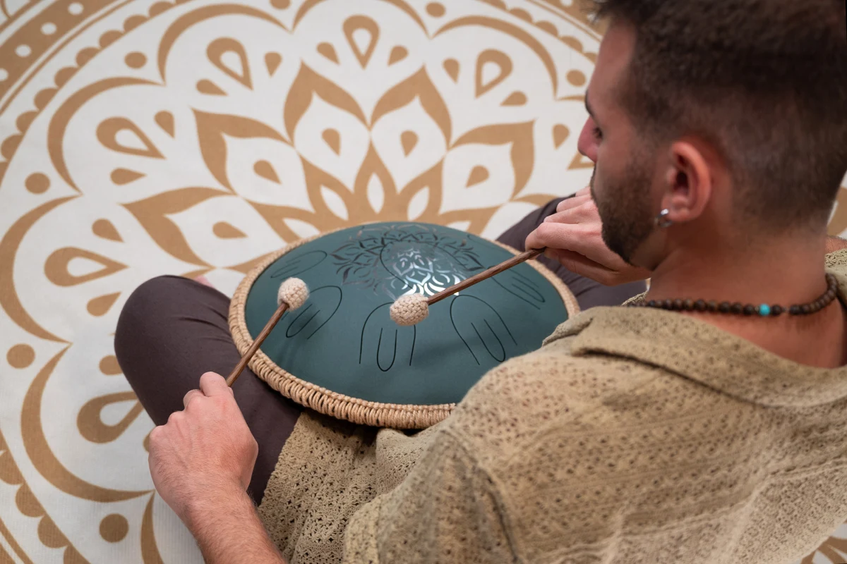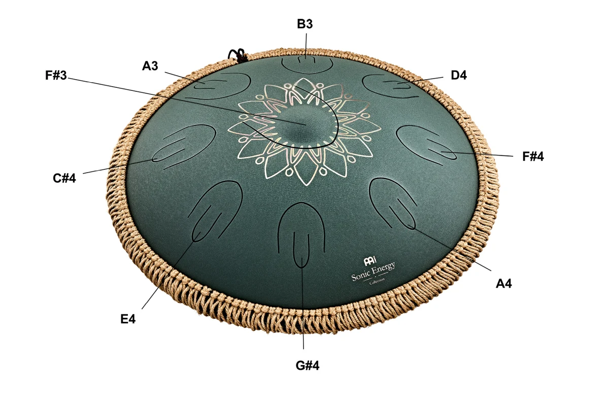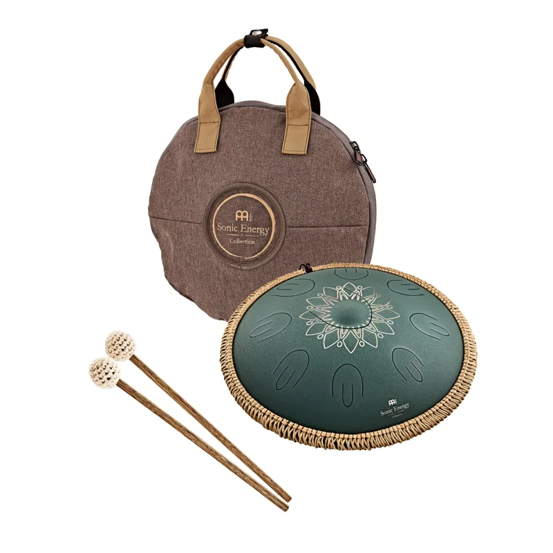 Die Meinl Sonic Energy Octave Steel Tongue Drum ist aus hochwertigem Edelstahl gefertigt. Sie besitzt einen zentralen Basston in der Mitte, welcher von acht weiteren Töne umgeben wird. Diese acht Tonfelder bestehen aus jeweils zwei Zungen, die den Ton in zwei Oktaven wiedergeben. Dadurch entsteht ein wunderbarer, meditativer Klang, der dem einer Handpan ähnelt. An der Unterseite der Trommel befindet sich das Schallloch, das mit einem Silikonstöpsel verschlossen werden kann, um den Klang noch kompakter klingen zu lassen. Außerdem befinden sich am Boden drei Silikonfüße, damit die Trommel nicht verrutscht. Sie können die Octave Steel Tongue Drum mit Schlägeln oder auf Wunsch auch mit den Fingern spielen. Legen Sie die Trommel einfach auf eine ebene Fläche oder auf Ihren Schoß, um mit dem Spielen zu beginnen.