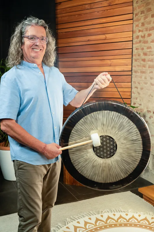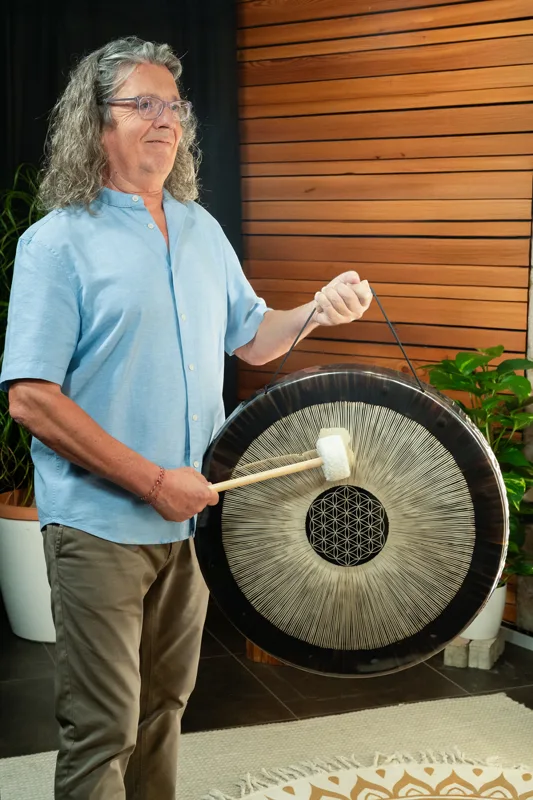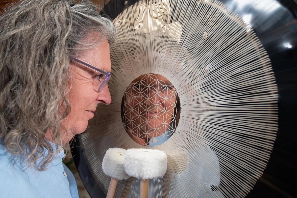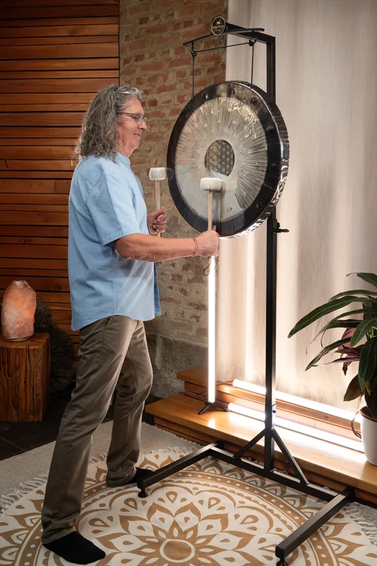 Dieser Flower of Life Soundscape Gong wird mit einer hochwertigen Tragetasche für sicheren und bequemen Transport geliefert, zwei Mallets (MGM1 & MGM2), einem Gong Handle (G-HANDLE) zum freien Spielen von Hand sowie einem Paar Handschuhen für sorgfältiges Handling. Mit seiner Stimmung auf 64 Hz erzeugt er tiefe, erdende Schwingungen, die den Zuhörer in einen Zustand von Ruhe und Verbundenheit führen.