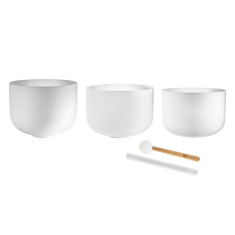 Die weiß-matten Meinl Sonic Energy Crystal Singing Bowls aus hochreinem Quarz schaffen durch ihren Klang und ihr Design eine sehr angenehme Atmosphäre. Ihr lang anhaltender, sphärischer Ton breitet sich aus, wenn die Klangschale sanft angeschlagen oder gerieben wird, sodass die Energie im gesamten Umfeld spürbar ist. Kristallklangschalen können vielseitig eingesetzt werden: zur Chakrenheilung, Meditation, Klangtherapie, Yoga, zur Verbesserung des Feng Shui im Zuhause, zur emotionalen Ausbalancierung oder sogar zur Raumdekoration.