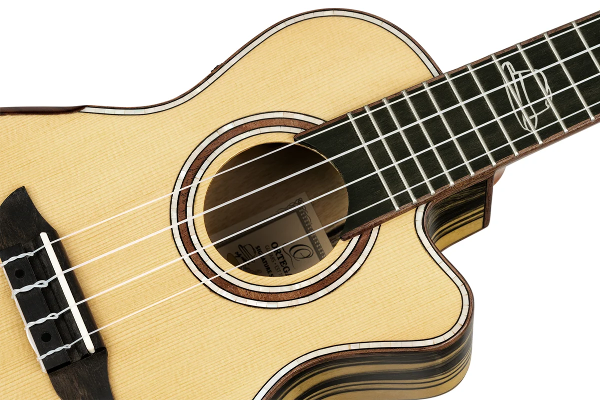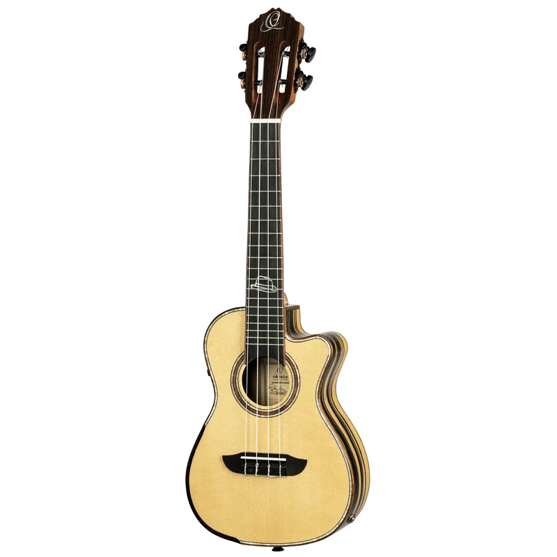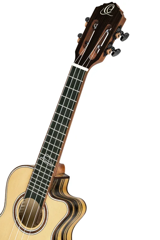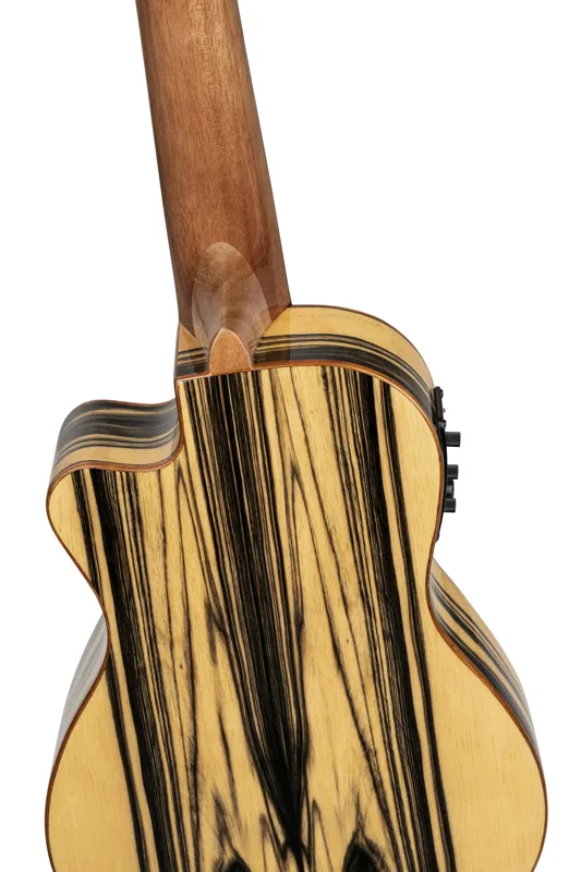 Das Signature-Modell von Billy Watman entstand in enger Zusammenarbeit mit ihm. Es verfügt über eine massive Fichtendecke sowie Boden und Zargen aus handverlesenem White Ebony. Das Griffbrett trägt Billys charakteristisches Hut-Inlay am 12. Bund, ergänzt durch ein auffälliges Abalone-Style-Purfling und eine Binding mit integriertem ergonomischem Armrest für hohen Spielkomfort.