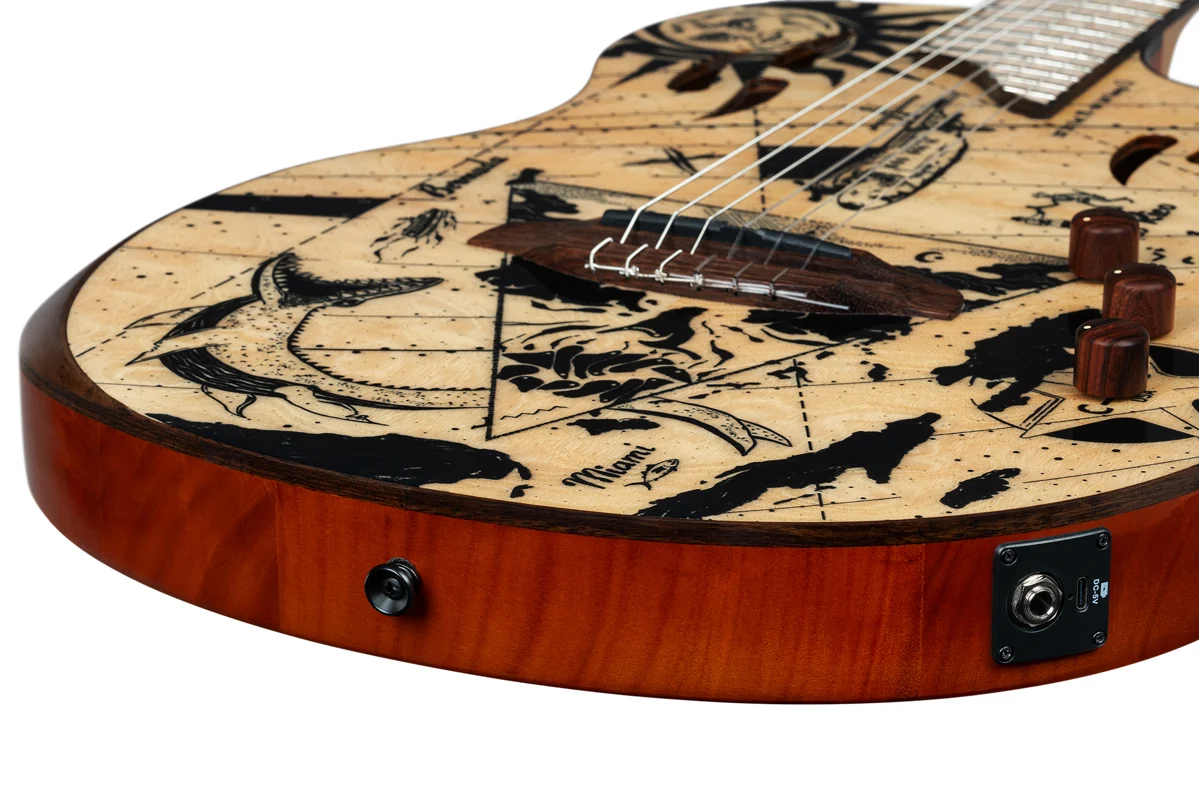 Die TourPlayer ist eine innovative Nylonsaitengitarre, entwickelt für den Einsatz auf der Bühne. Sie verbindet den warmen Klang von Nylonsaiten mit der Dynamik einer E-Gitarre und bietet ein modernes Spielgefühl. Der bequeme D-Hals und die 48 mm Sattelbreite machen sie besonders für Spielerinnen und Spieler geeignet, die von Stahlsaiten auf Nylon umsteigen möchten. Das wiederaufladbare Ortega Preamp-System sorgt für flexible Klangregelung ohne Rückkopplungen. Jede TourPlayer wird mit einer passenden, robusten Gigbag geliefert – ideal für unterwegs.